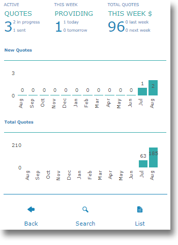 The dashboard will give you an overview of your quote performance, allow you to search through your quotes and provide a full list of quotations in the system.
