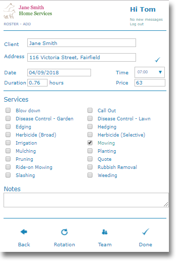 Create a repeat business model easily by setting up regular services for your clients. Job rotations are automatically added into the roster and performance metrics in other modules such as clients, properties and services will be re-calculated.