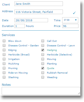 Creating quotes is as simple as heading into the roster, creating a job and selecting "Quote" from your services. The job price and duration will automatically calculate as you select each available service.