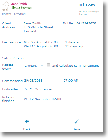 Create a repeat business model easily by setting up regular services for your clients. Job rotations are automatically added into the roster and performance metrics in other modules such as clients, properties and services will be re-calculated.